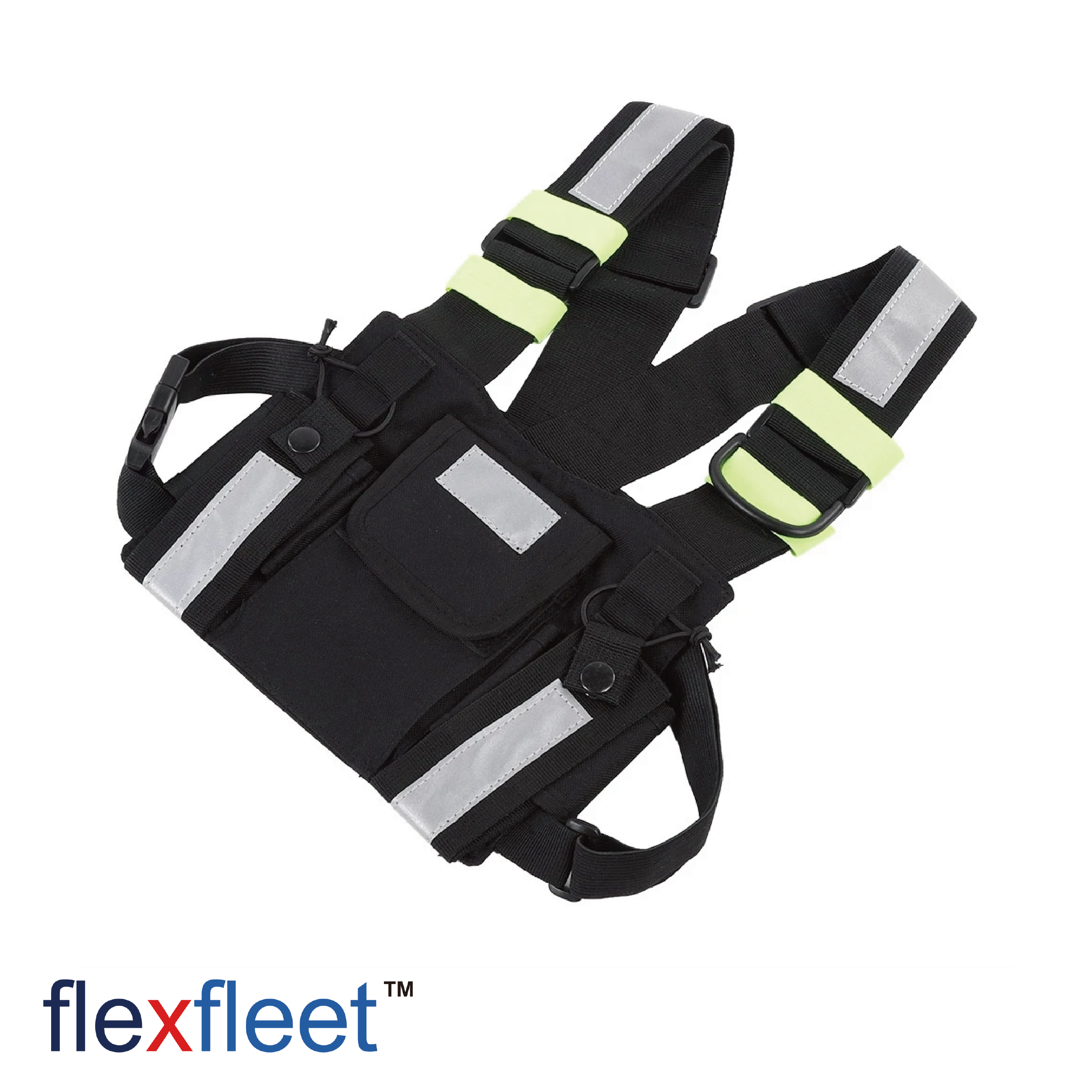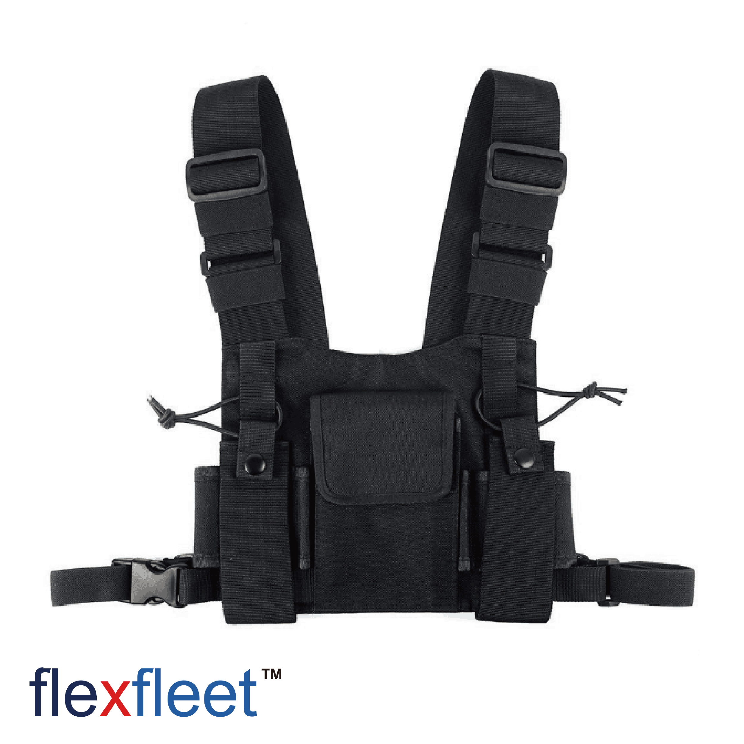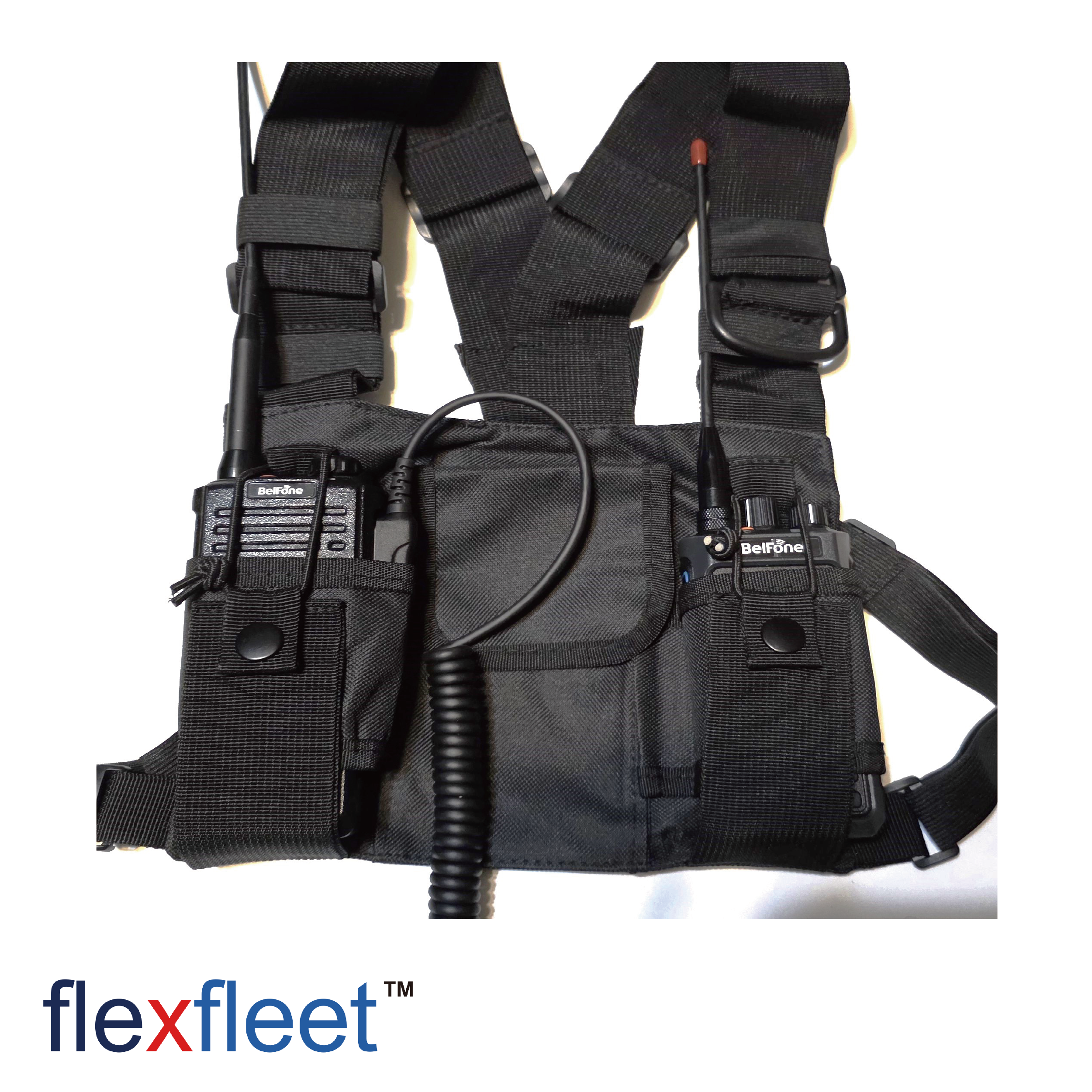 チェストハーネスタイプですので、デューティーベルト等既に腰回りに装備品のスペースが無い場合や、無線機の画面を確認する頻度が高いオペレーションに最適です。 また車両の乗り降りが多い場合など、腰に付けた無線機により車両や周囲を傷をつける心配も低減します。