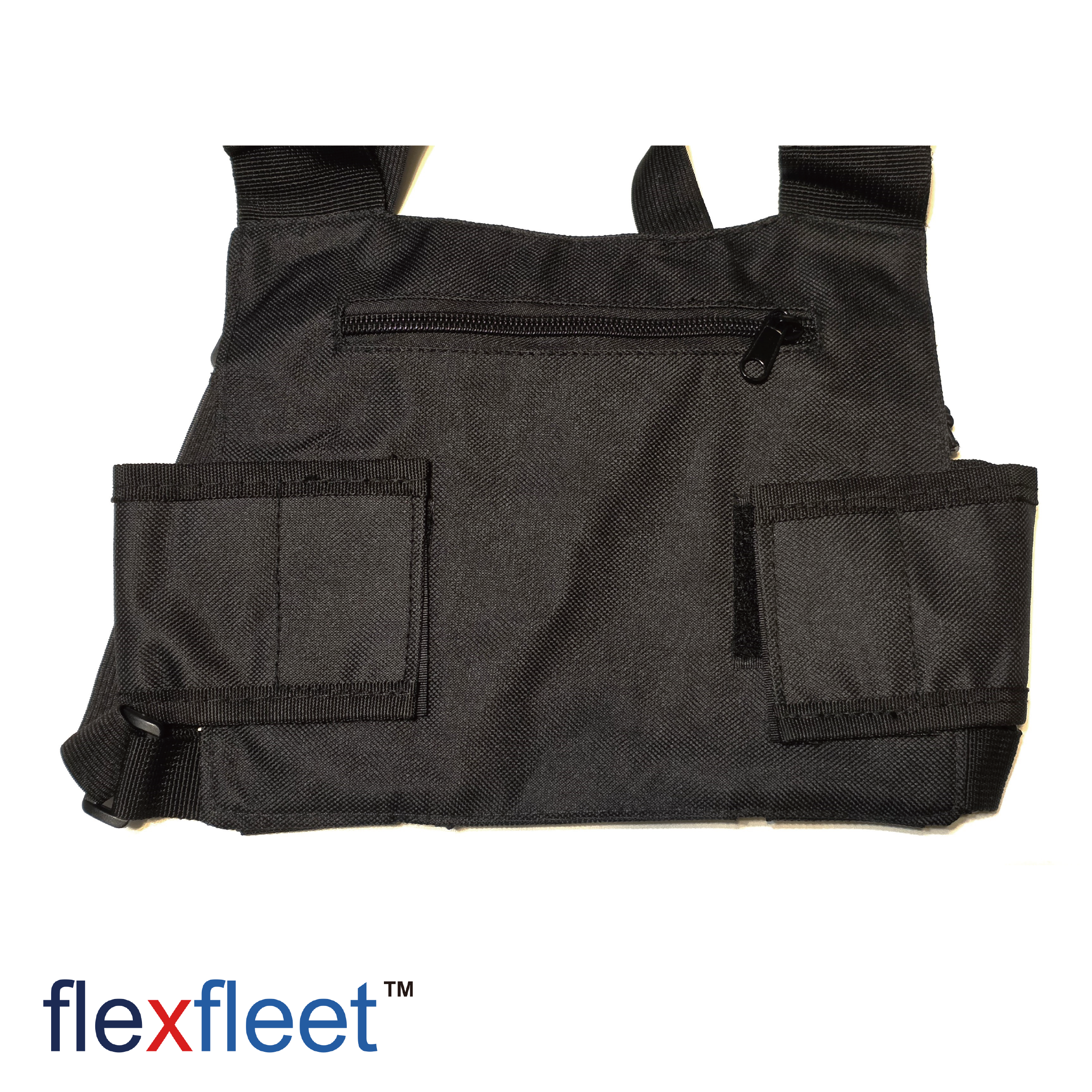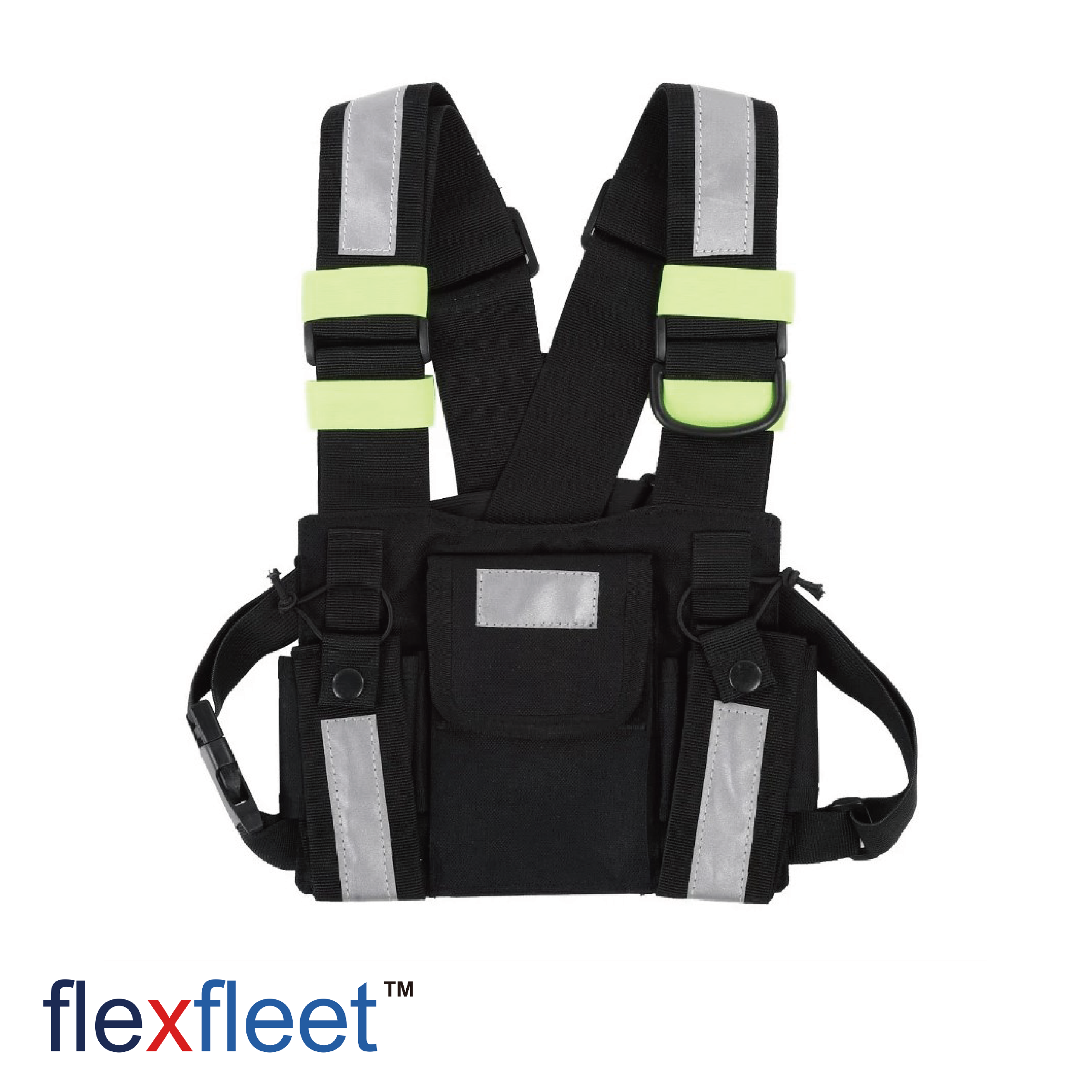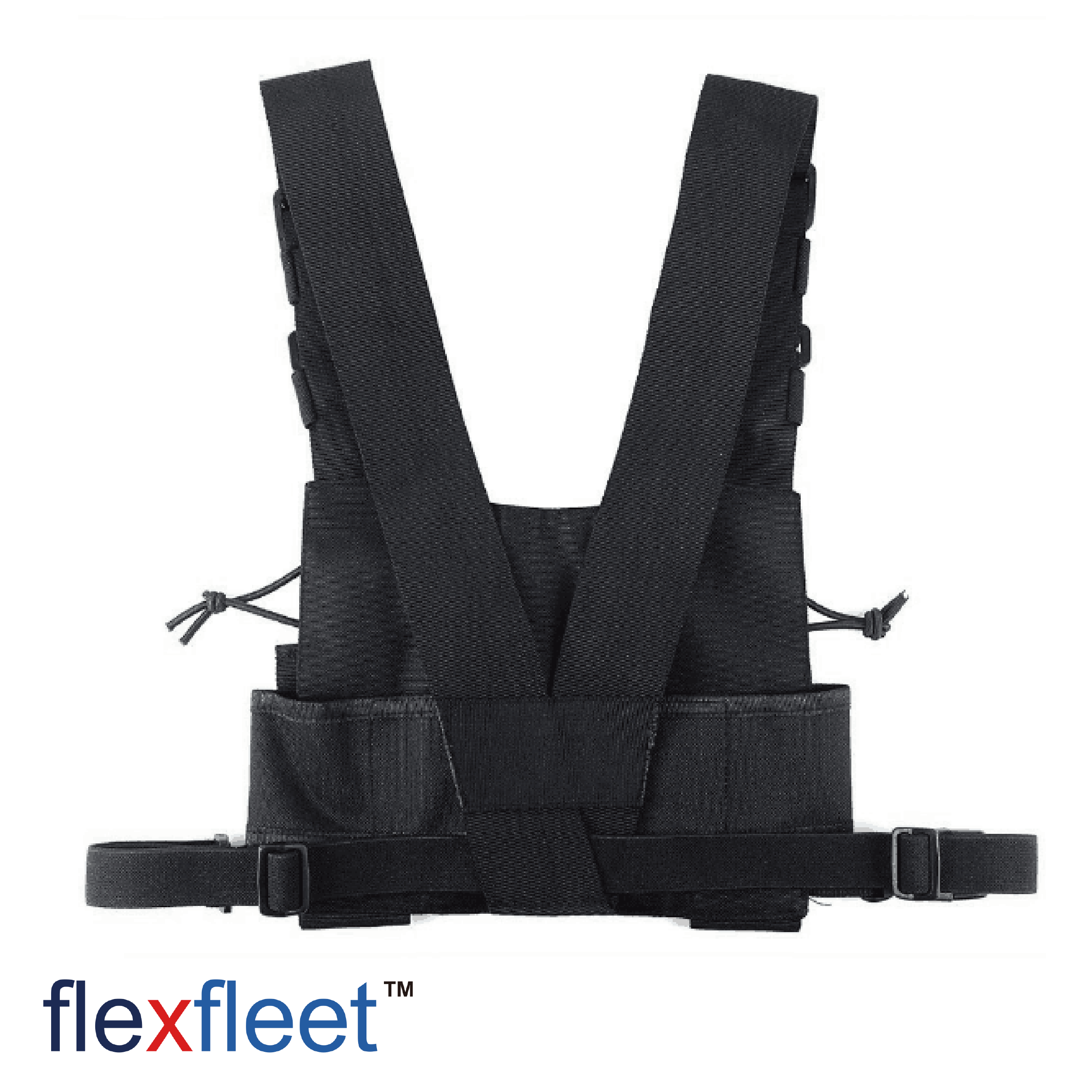 チェストハーネスタイプですので、デューティーベルト等既に腰回りに装備品のスペースが無い場合や、無線機の画面を確認する頻度が高いオペレーションに最適です。 また車両の乗り降りが多い場合など、腰に付けた無線機により車両や周囲を傷をつける心配も低減します。