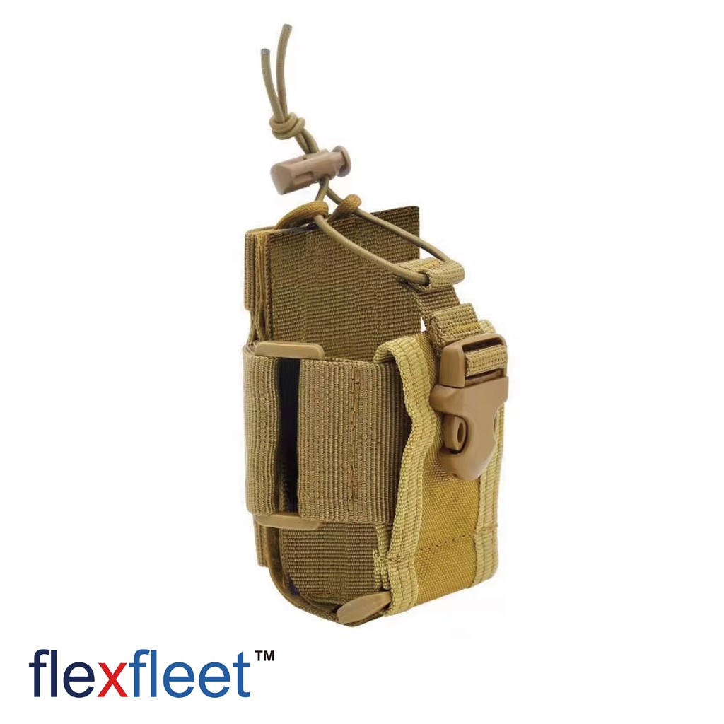 ポータブル無線機を1台を前面に格納、デューティーベルト等の横向きやバックパックのスリングのような縦向きに固定できるホルスターです。